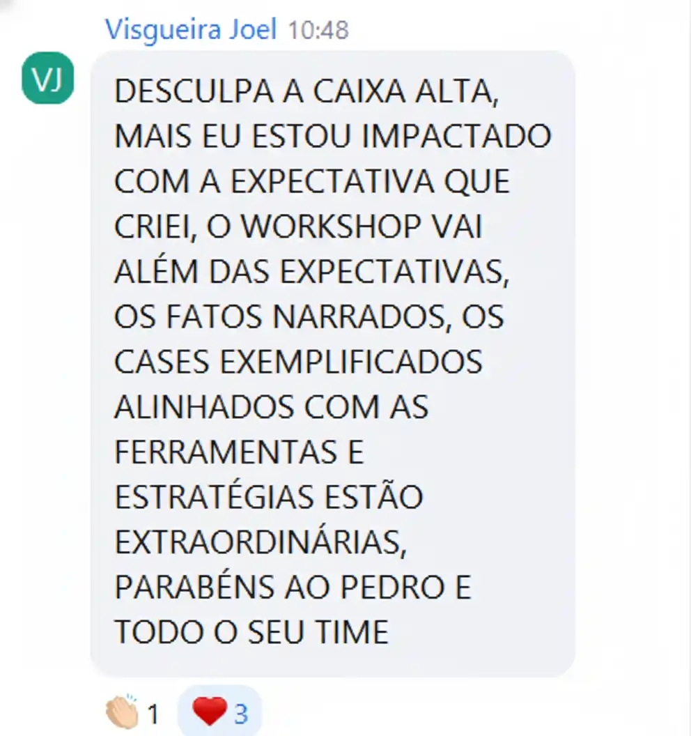 Por que Pedro criou este workshop? Porque ele sabe que você já tem experiência, só precisa das ferramentas certas para acelerar drasticamente seus resultados. Em 2 dias, ele vai te transferir anos de estratégias e automatização prática usando I.A validada no mercado.