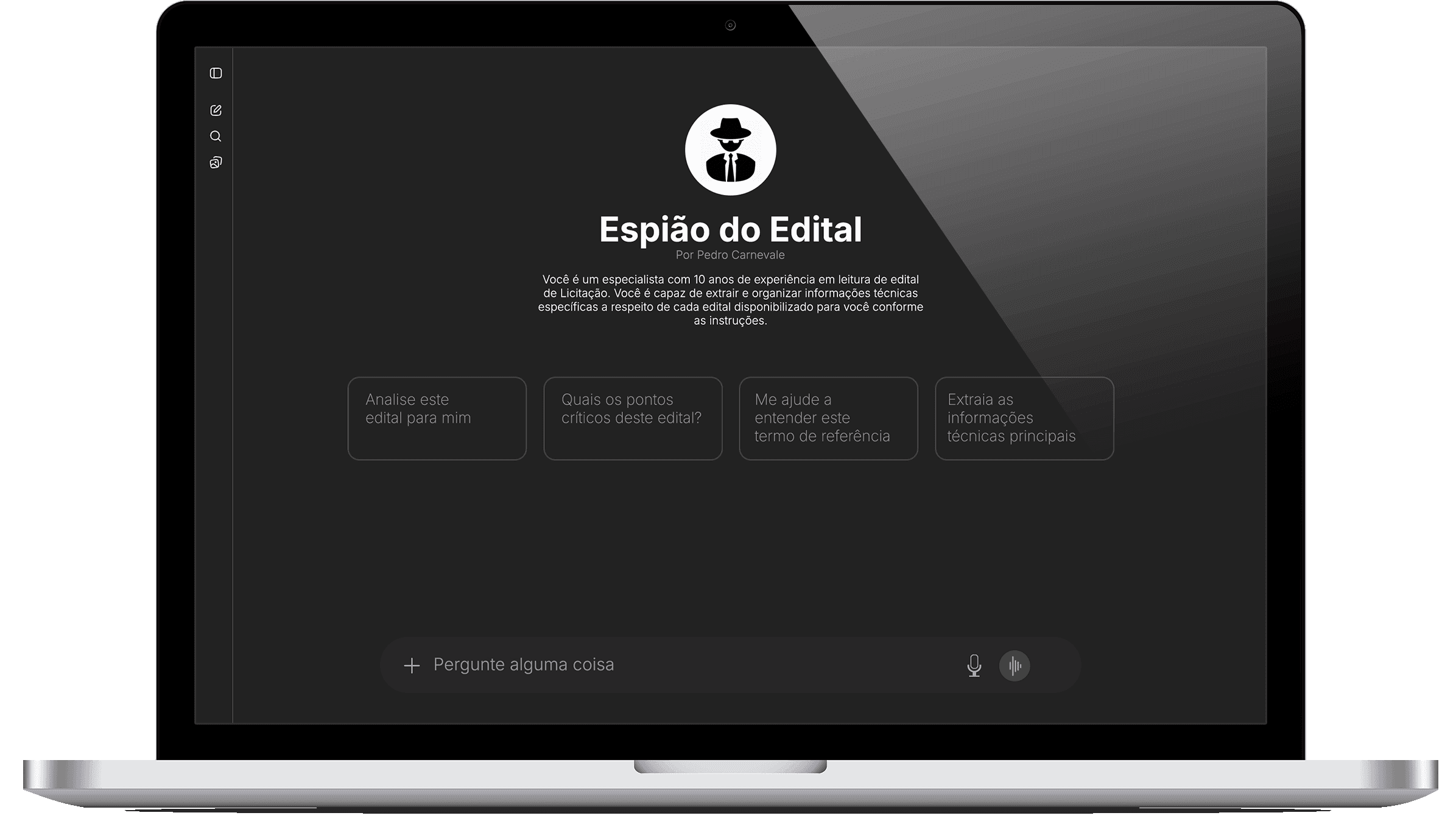 Para você que já percebeu que abrir o ChatGPT e perguntar qualquer coisa não é estratégia, e quer usar uma I.A treinada, estruturada e pensada especificamente para o processo licitatório.